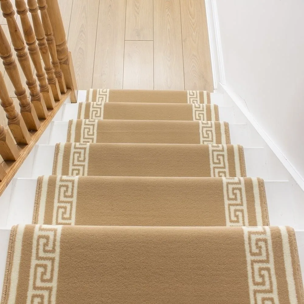 This beige stair runner offers a warm and elegant look that suits both modern and classic interiors. Its tightly packed pile delivers a comfortable walking surface while maintaining strength in daily use. Ideal for busy staircases, it stays neat and reliable over time.